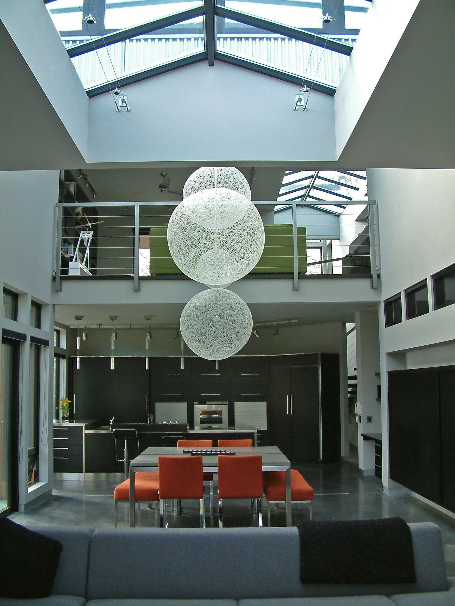 Clean, minimalist design with an open-concept layout, Modern Haiku's 24-foot cathedral ceiling entrance is punctuated by a cantilevered staircase that seems to float to the second floor loft. Kitchen, dining and living rooms are comfortably nested together making this home extremely livable....form meeting function.